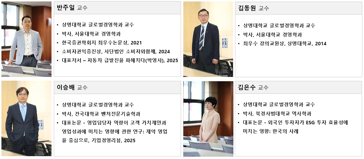 경영경제대학(경영학부, 글로벌경영학과, 경제금융학부) 내 강의 교수