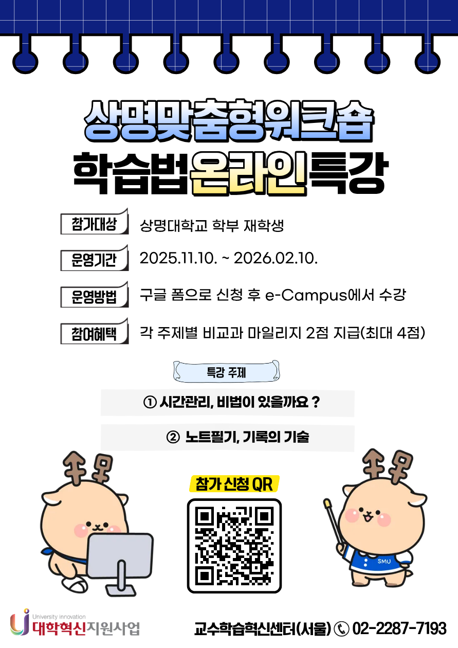 상명 [비교과] [교수학습혁신센터(서울)]2025학년도 2학기 상명맞춤형워크숍_학습법 온라인 특강 -
